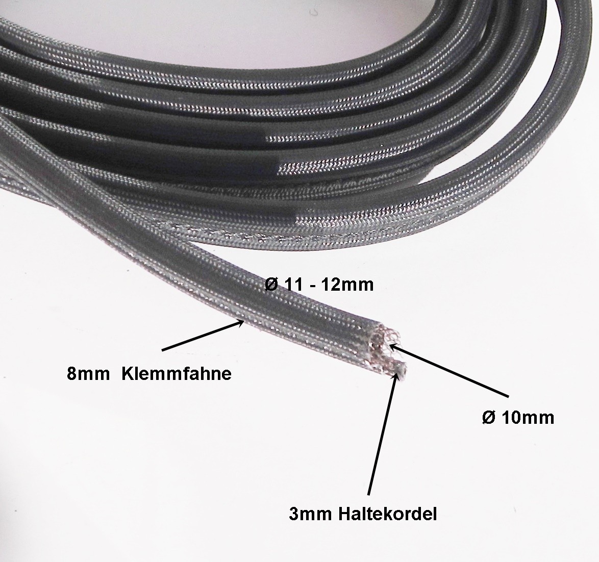 Diese Fahnendichtung hat ein flexibles Drahtgeflecht von ca. 10mm innen liegend.