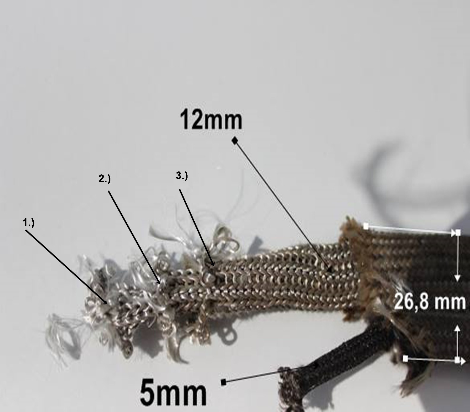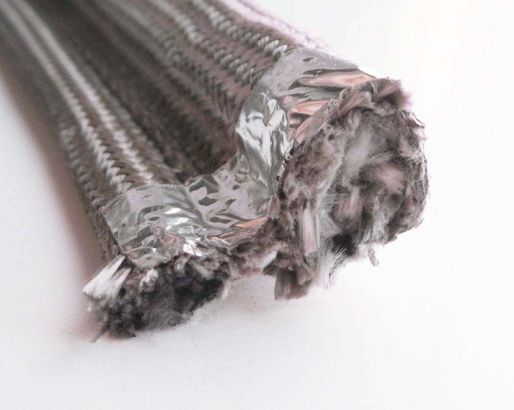 Diese Fahnendichtung hat eine feste geflochtene Innenkorden, die 2-fach mit einem Strickschlauch überzogen wurde. Anschließen umfast das E-Glasgewebe diese Kordel und wurde mit einer Fahne zum einklemmen abgenäht.