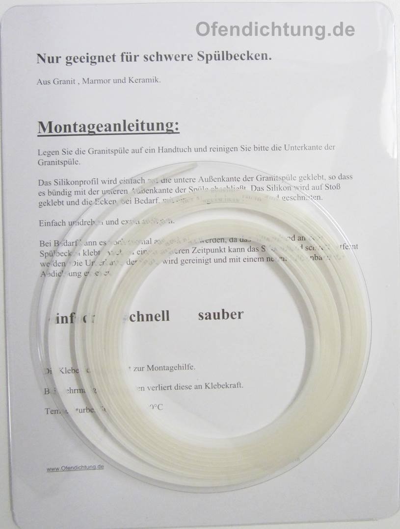 Sie erhalten hier die helle Ausführung des Silikon-Vierkantprofil mit Klebefixierung in einer Länge Ihrer Auswahl für helle / weiße Arbeitsplatten und einem hellen Spülbecken.